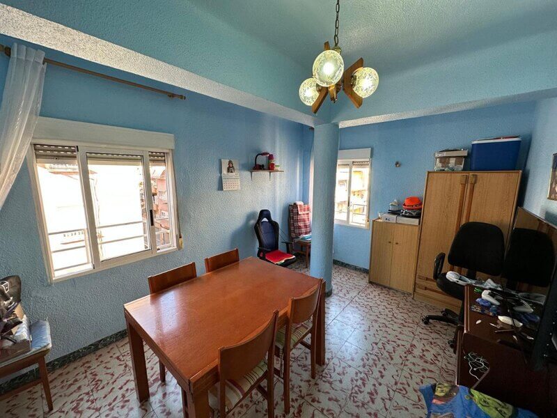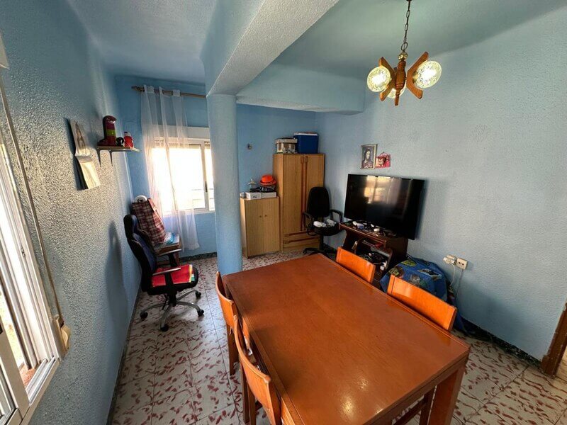 For sale cheap apartment in Elche next to the park. It’s on the fifth floor (no elevator in the building). It has 3 bedrooms, a living room, a kitchen, and a bathroom. It’s just 20 minute ride to Alicante.