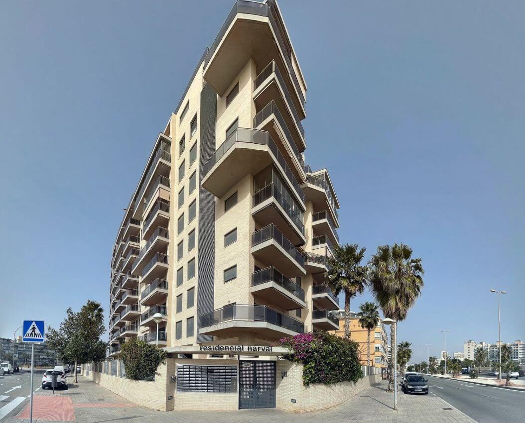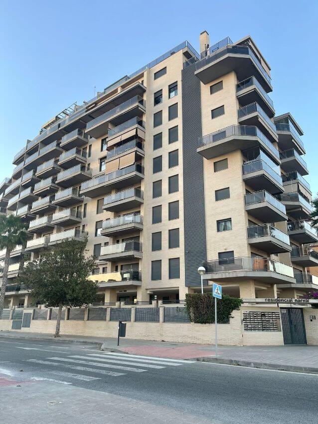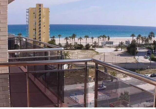 or sale front line beach property in San Juan de Alicante. The complex was built in 2012. The apartment consists of 2 bedrooms, 2 bathrooms, а living room, a kitchen and a terrace with a sea view. All white goods and furniture are included in the price! All residents of the complex can use a swimming pool, a tennis court, a fitness hall and a playing ground for children. Only 100 meters to the water, the tram stop is 2 minutes by walk!