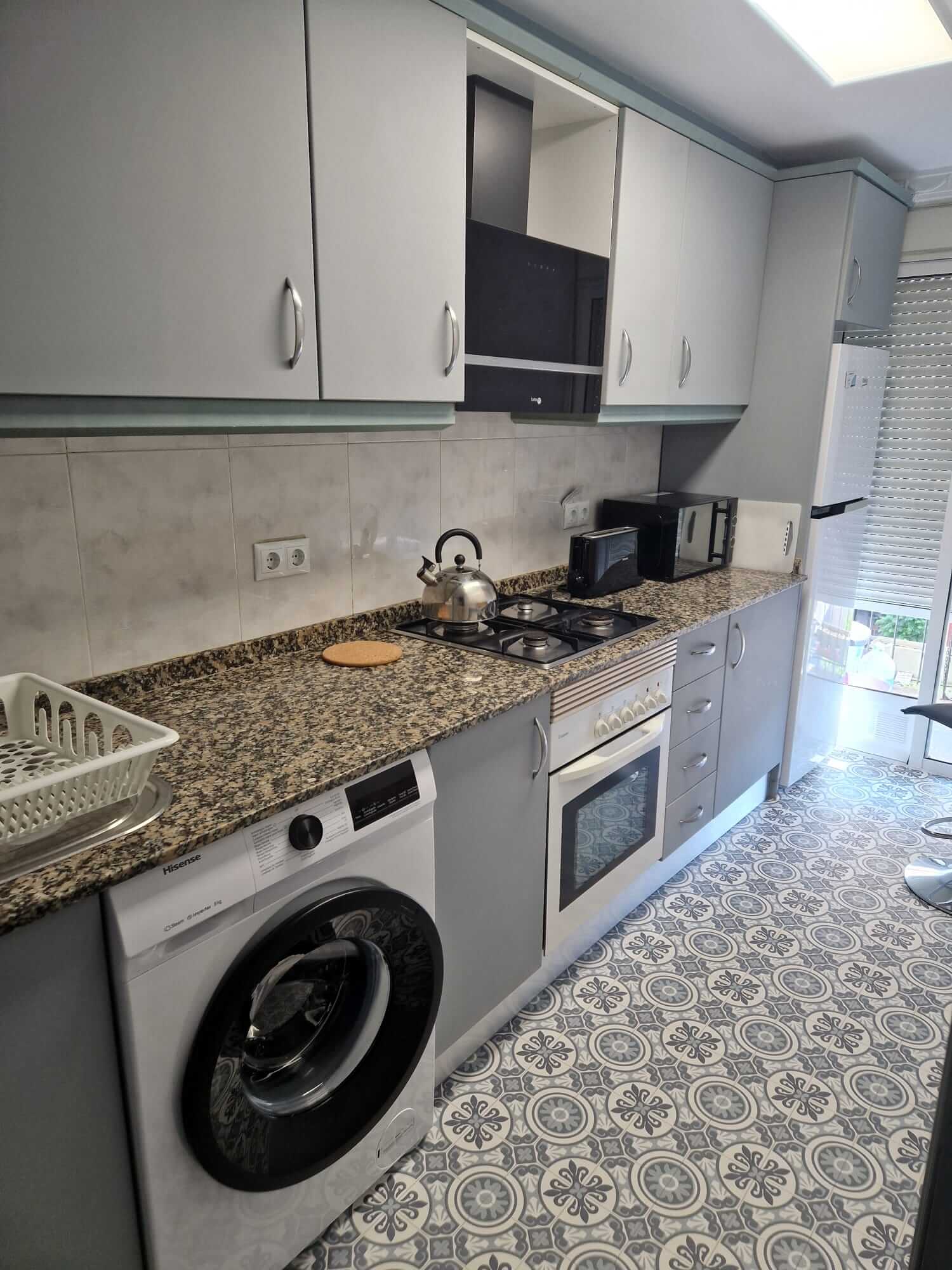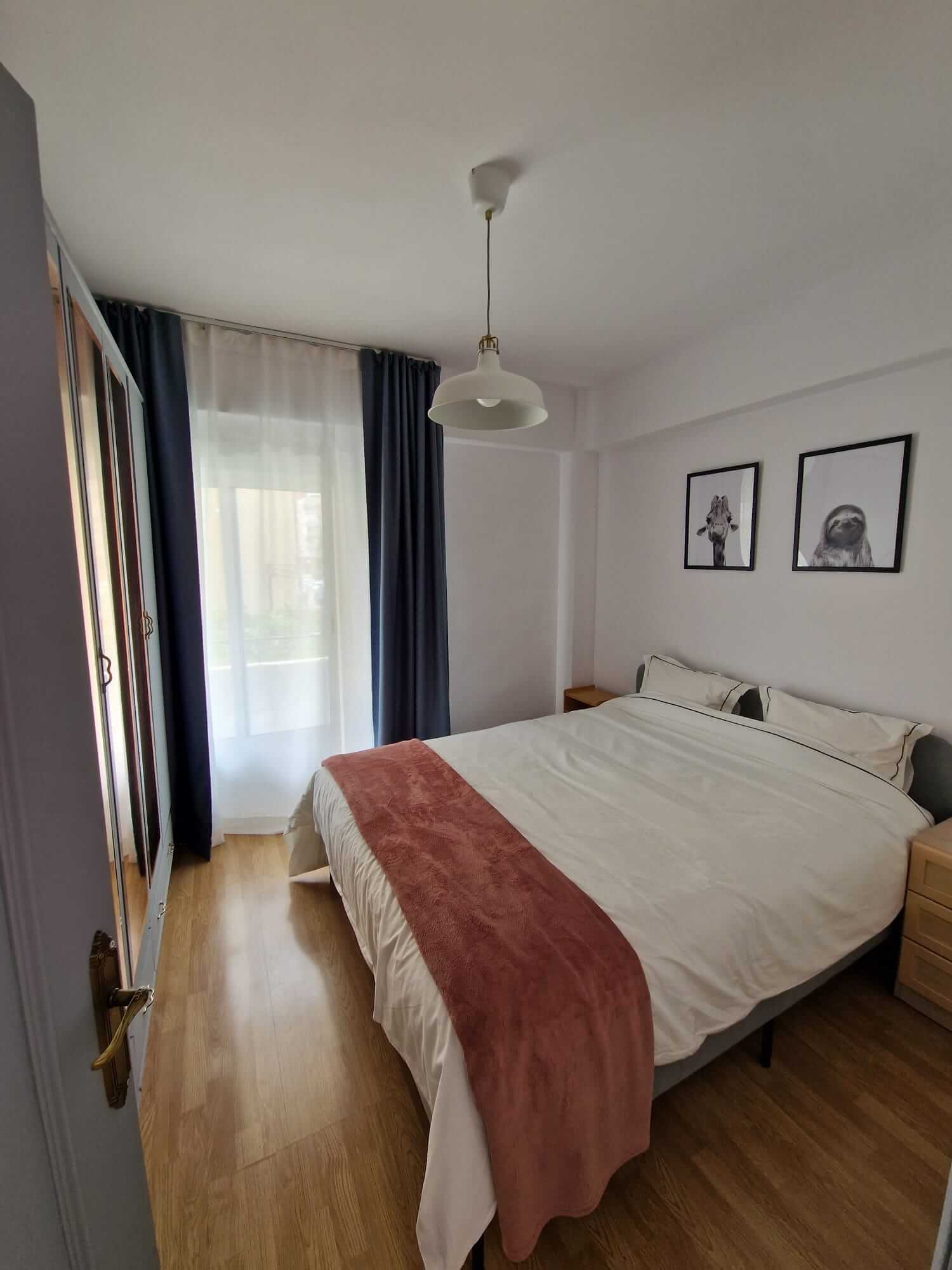 Rent apartment in Alicante for short term stay. The apartment consists of a living room, 3 bedrooms (one with a big bed and other two with a single bed), a kitchen, a bathroom and a balcony. 20 minutes walk to the beach! The apartment is equipped with the new air conditioners, furniture and white goods. The stores, bus stops, market are nearby.